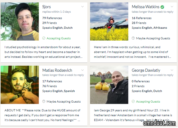 Di beberapa negara seperti Turki, Iran atau India, jika kamu mengirimkan permintaan menginap, bisa jadi kamu akan mendapatkan lebih dari satu orang yang bersedia menumpangi kamu karena memang di sana cenderung mudah mendapatkan host. Apalagi kalau kamu cewek hehe.