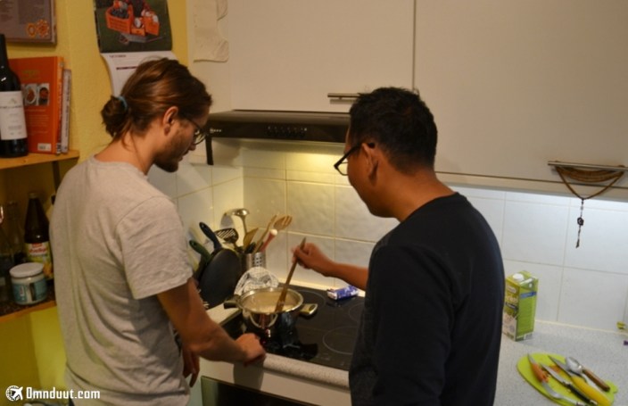 Barulah malam selanjutnya kami punya waktu cukup banyak. Kami banyak ngobrol sembari menemaninya memasak (kami nggak ikutan, karena sudah kenyang dibeliin bekal makan malam sama Mas Sony). Baru deh suasana mencair. Dennis ini pengetahuan akan musiknya boleh juga. Saking penasaran sama musik Indonesia, dia meminta saya memutar lagu-lagu Indonesia. Lalu, mengalunlah lagu Sayang-nya Via Vallen hahaha.