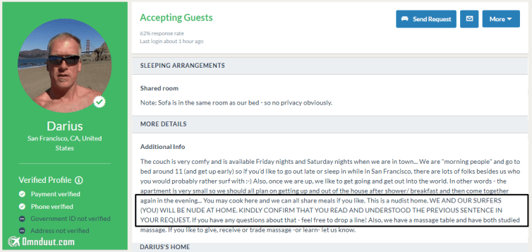Ada beberapa member yang menulis di profilnya, “saya hanya mau menerima orang yang akunnya terverifikasi.” Ya terserah. Jika nemu yang model begitu abaikan saja, cari host lain. Soal trust itu nggak bisa tergambar dari apakah akun kamu terverifikasi atau nggak atau dari banyak atau sedikitnya jumlah referensi sih kalau menurut saya.