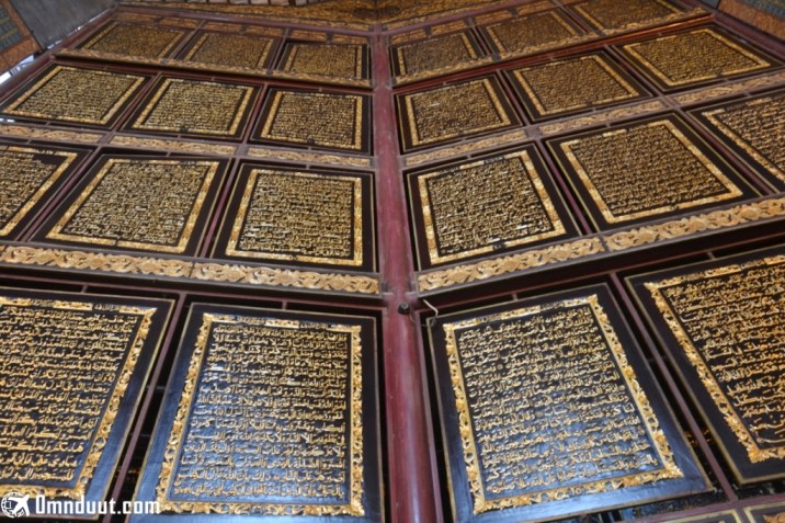 Papan ukir Alqurannya disusun bertingkat ke atas.
