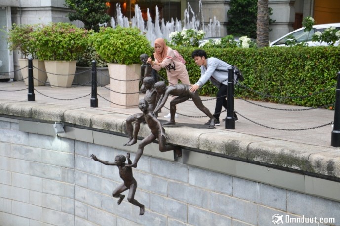 Begitu tiba di Changi, kami langsung otw ke hostel buat tarok ransel dan koper. Setelahnya, kami langsung jalan menuju sekitaran Merlion. Sengaja pilih MRT station yang turunnya dekat Fullerton Hotel, soalnya kami mau menyusuri sungai dan menjumpai patung The Five Boys by The River yang terkenal itu.