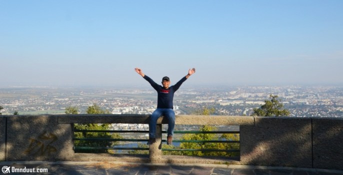 Saat saya datang ke sana, matahari bersinar terang walau cuaca dingin. Sepanjang perjalanan ke atas, saya dapat melihat kota Wina dari kejauhan. Sayang, kabut cukup tebal sehingga kota nampak samar terlihat. Namun, hal itu tidak mengurangi rasa hepi yang saya rasakan.