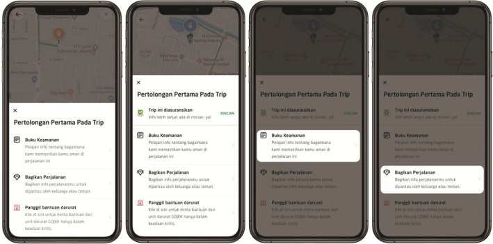 Begitu tahu Bagikan Perjalanan ini sudah dapat diakses pengguna GO-CAR dan GO-RIDE di seluruh Indonesia, saya senang sekali. Soalnya, saya sering memesankan GO-CAR untuk ibu saya. Dengan adanya fitur ini, saya dapat mengetahui pergerakan ibu saya secara langsung. Saya dapat melihat titik di mana ibu saya dijemput (pick up) dan di mana ibu saya diantarkan (drop off). Saya juga dapat mengetahui informasi pengendara secara lengkap dari nama, nomor dan jenis kendaraan serta ID pemesanan.