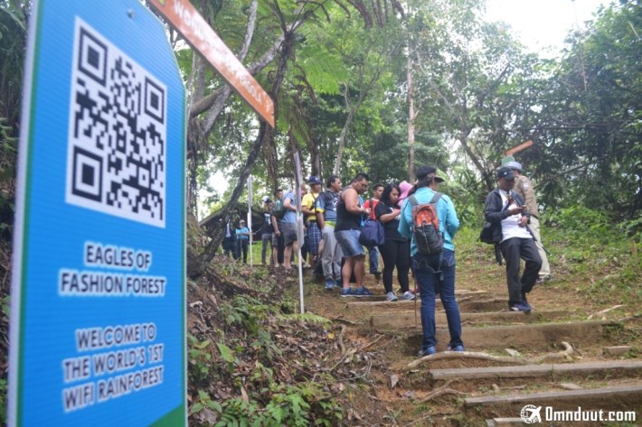 Eh jangan salah, ada banyak sekali QR Code yang tersebar di hutan ini di mana masing-masing QR Code berisi informasi. Misalnya saja QR Code yang terlihat di satu pohon, maka begitu QR Code digunakan, kalian akan dapat informasi tentang pohon tersebut. Jadi, berwisata ke alam sambil diedukasilah istilahnya.