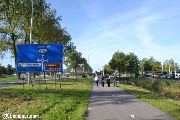 Ada dua alternatif penggunaan transportasi umum menuju Zaanse Schans. Pertama, menggunakan kereta. Kedua, menggunakan bus. Semuanya ada kelebihan dan kekurangannya. Kalau naik kereta, jelas lebih cepat, tapi dari stasiun harus berjalan lagi menuju lokasi utamanya. Nah, jika menggunakan bus, berhentinya langsung di halte tak jauh dari gerbang masuk.