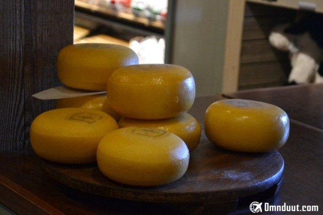 Puas foto-foto di sekitaran kincir angin, kami bergerak masuk ke beberapa bangunan khas yang ada di sekitaran Zaanse Schans. Salah satunya ke pabrik pembuatan keju di toko De Catherine Hoeve. Di toko ini banyak sekali dijual keju glondongan hehe.