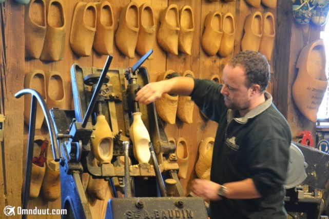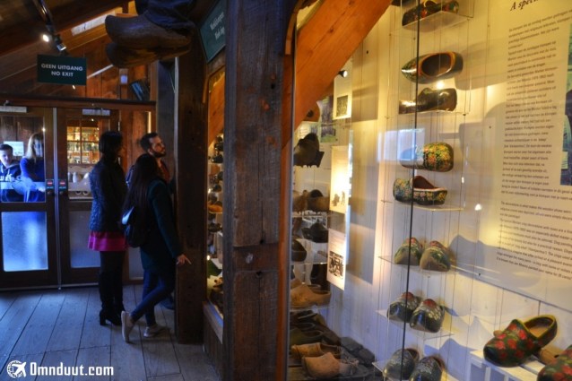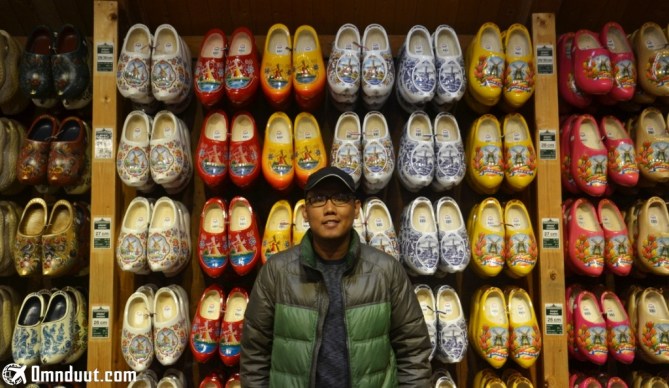 Masih di sekitaran Zaanse Schans, saya tergerak masuk ke satu bangunan di mana, di bagian depan bangunan ini terdapat sebuah sepatu kayu berukuran raksasa! Nah, bagi yang belum tahu itulah klompen atau wooden shoe/sepatu kayu khas Belanda yang sudah ada sejak tahun 1230! Dulu, penduduk menggunakan klompen sebagai alas kaki karena murah dan tahan lama.