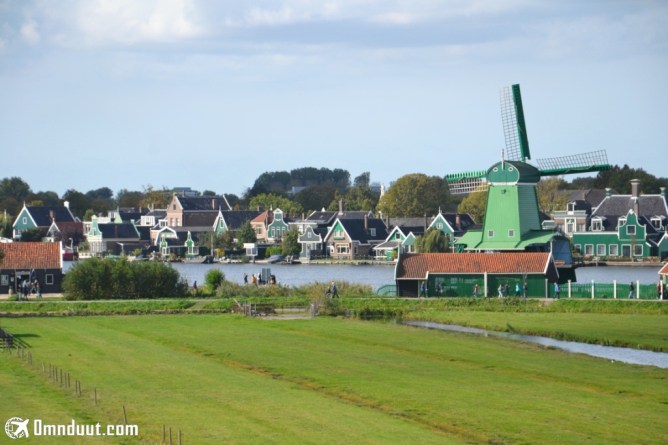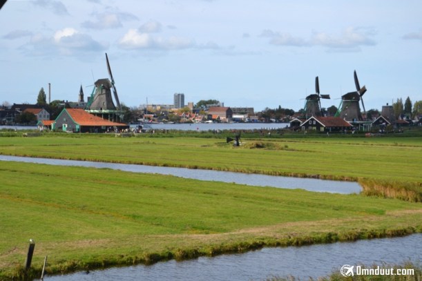 Jarak antara Amsterdam Central ke Zaanse Schans yang berada di Zaandijk, Zaandam itu sekitar 18 km. Kalau naik bus sih antara 20 sd 30 menit tergantung kondisi jalan. Dari Amsterdam Central, perjalanan tergolong lancar. Setelah melewati perkotaan, bus mulai bergerak ke area pedesaan yang minim bangunan modern.