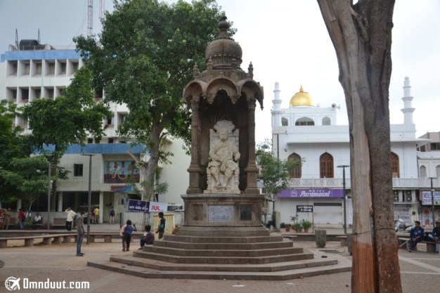 Tujuan saya masuk ke kawasan ini pingin ke Benteng Bhadra yang berada di ujung jalan. Nah, karena di sini sekarang udah jadi kawasan pasar jadi kondisi jalanannya banyak terdapat sampah walaupun nggak yang parah banget, sih. Saya melewati sebuah monumen sebelum mencapai gerbang utama Benteng Bhadra.