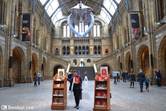 Oh ya, spesimen yang dikumpulkan oleh Charles Darwin juga ada di museum ini. Makanya, ada patung Charles Darwin berdiri tegak di tangga menuju ke atas. Museum ini juga sangat terkenal karena memiliki pameran kerangka dinosaurus. Bahkan, di satu ruangan khusus terdapat robot dinosaurus yang dapat bergerak sendiri.