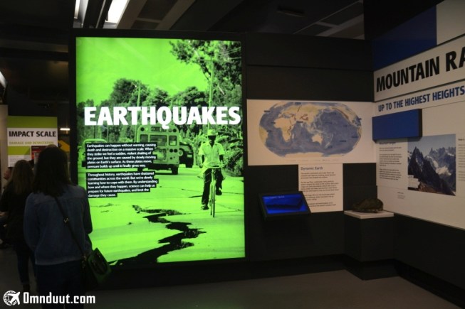 Di Museum Science ini saya ketemu juga satu kawasan yang seru, yakni area yang menampilkan jenis-jenis bencana alam di dunia, termasuk gempa bumi. Jadi, ada satu panggung/ruangan kecil yang diset semacam swalayan di mana jika pengunjung berada di sana, maka akan merasakan getaran dari gempa bumi.