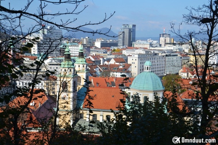 Suasana kota Ljubljana menyembul diantara pepohonan.