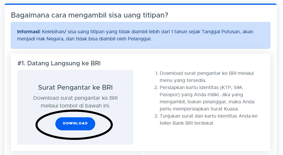 Untuk proses pengambilan dana ini, dapat dilakukan dengan 2 cara. Pertama, unduh surat pengantar dari kejaksaan lalu datang ke BRI. Di surat yang saya dapatkan itu, prosesnya dilakukan di BRI Cabang Palembang A.Rivai.