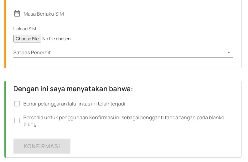 Input juga foto SIM. Ini bisa jadi pertimbangan sepertinya. Kalau nggak punya SIM bisa jadi dendanya besar/kena denda maksimal.