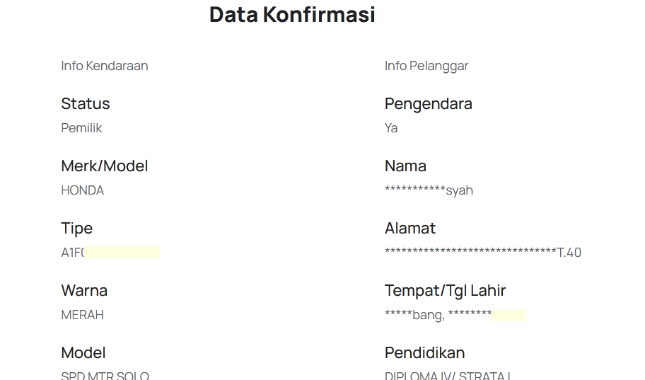 Nah setelah konfirmasi selesai, maka nanti akan muncul rekapitulasinya dari semua data yang sudah diinput. Informasi ini juga dapat diunduh dan nanti di kertas pdfnya akan ada link untuk mengecek status tilang onlinenya. Yang penting, catat juga nomor blangko atau kode E-Tilangnya. Nomor ini yang akan digunakan nanti untuk mengecek kode pembayaran dan pengembalian kelebihan dana tilang elektronik.