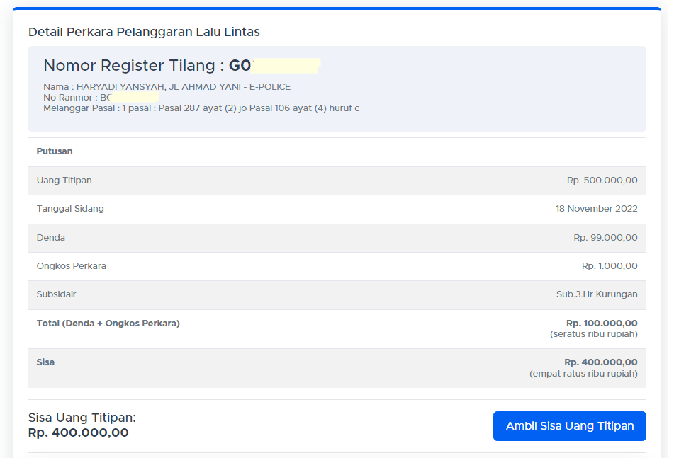 Tilang e14 Diterbitkan 21 November 2022 di 951 × 647 dalam Cara Mudah Proses Pengembalian Kelebihan Dana Tilang Elektronik ← Sebelumnya Selanjutnya →