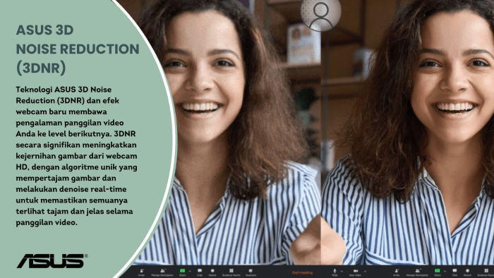 Lalu, saya kembali membayangkan jika memiliki ASUS Vivobook 14 M1405 yang sudah punya Teknologi ASUS 3D Noise Reduction (3DNR) sehingga real-time webcam-nya lebih optimal. Sebab, dengan 3DNR ini, tangkapan gambarnya akan semakin jernih dan tajam bahkan ketika melakukan denoise real-time selama panggilan video.