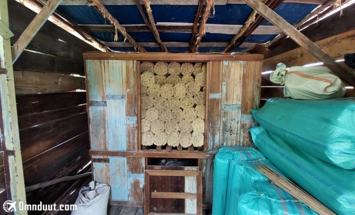 Nah, rupanya di Kampung Perigi Laut pun ada pengusaha yang masih membuat rokok nipah. Beliau adalah Pak Iyan, yang dengan senang hati mengajak kami ke gudang tempat rokok nipah diproses.