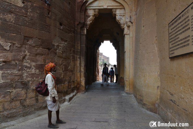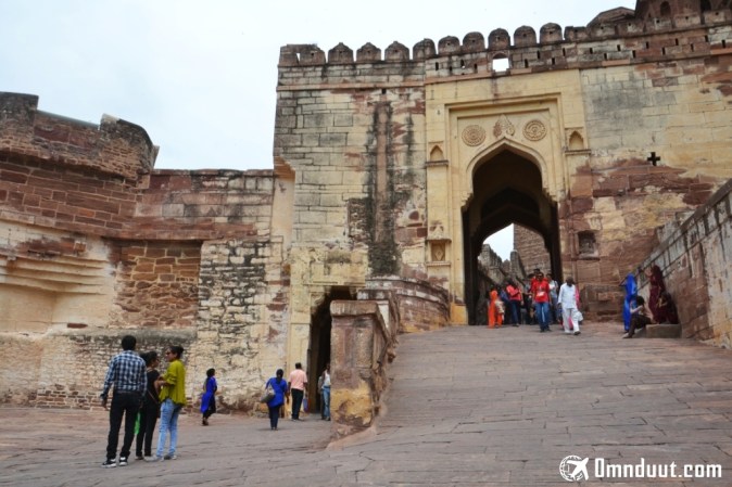 Alhamdulillah, setelah berjalan sekitar 20 menit termasuk menaiki tangga yang lumayan menanjak untuk menuju bagian atas, tiba juga saya di gerbang masuk Mehrangarh Fort. Saat itu pukul 10 pagi, dan sudah mulai terlihat kepadatan pengunjung.