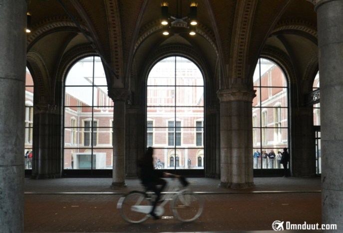 Rijksmuseum terdiri dari dua persegi dengan atrium di setiap pusatnya. Di poros tengah terdapat terowongan dengan pintu masuk di lantai dasar dan Galeri Kehormatan di lantai pertama. Nah, di terowongan inilah saya sempat melihat pengamen jalanan menunjukkan kebolehannya. Seru liatnya walau saya yakin mereka dapat diusir sewaktu-waktu oleh petugas.