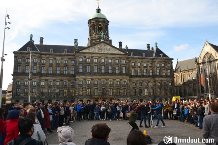 Amsterdam Square atau Alun-alun Amsterdam nama aslinya malah Dam Square yang sebagaimana di Indonesia, kata “dam” ini berarti “bendungan”. Dinamakan demikian, ya karena letaknya hanya 750 meter dari Centraal Station, yang merupakan lokasi asli bendungan Sungai Amstel.