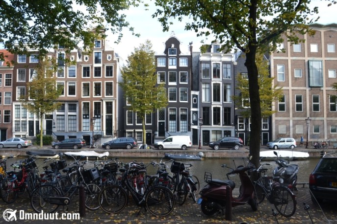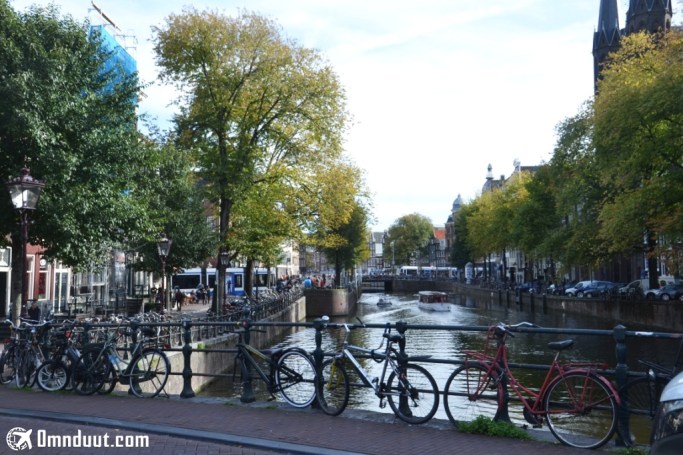Di mana-mana terlihat sepeda yang terparkir. Ingin rasanya bisa mengeksplor Amsterdam menggunakan sepeda. Apalagi, cuaca musim gugur saya rasa cocok digunakan untuk mengayuh. Ya sekalian menghangatkan badan. Tapi, mau pinjam siapa? Saat itu ya gak kepikir nyari penyewan juga, sih.
