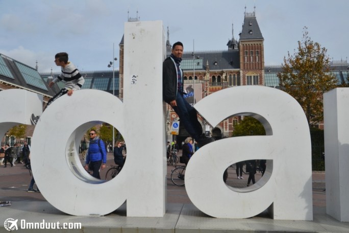 Jalan-jalan di Amsterdam nggak cukup kalau cuman sebentar ya kak. Jalannya indah banget. Alun-alunnya ramai, banyak menceritakan sejarah. Orang-orang kok fotonya pada naik di huruf gitu ya apa nggak dilarang? Serem kalau jatuh, sakit dan malu pasti. Udah paling bagus foto di bawah aja ya kak, dengan foto gaya andalan bapak-bapak, aman, haha.
