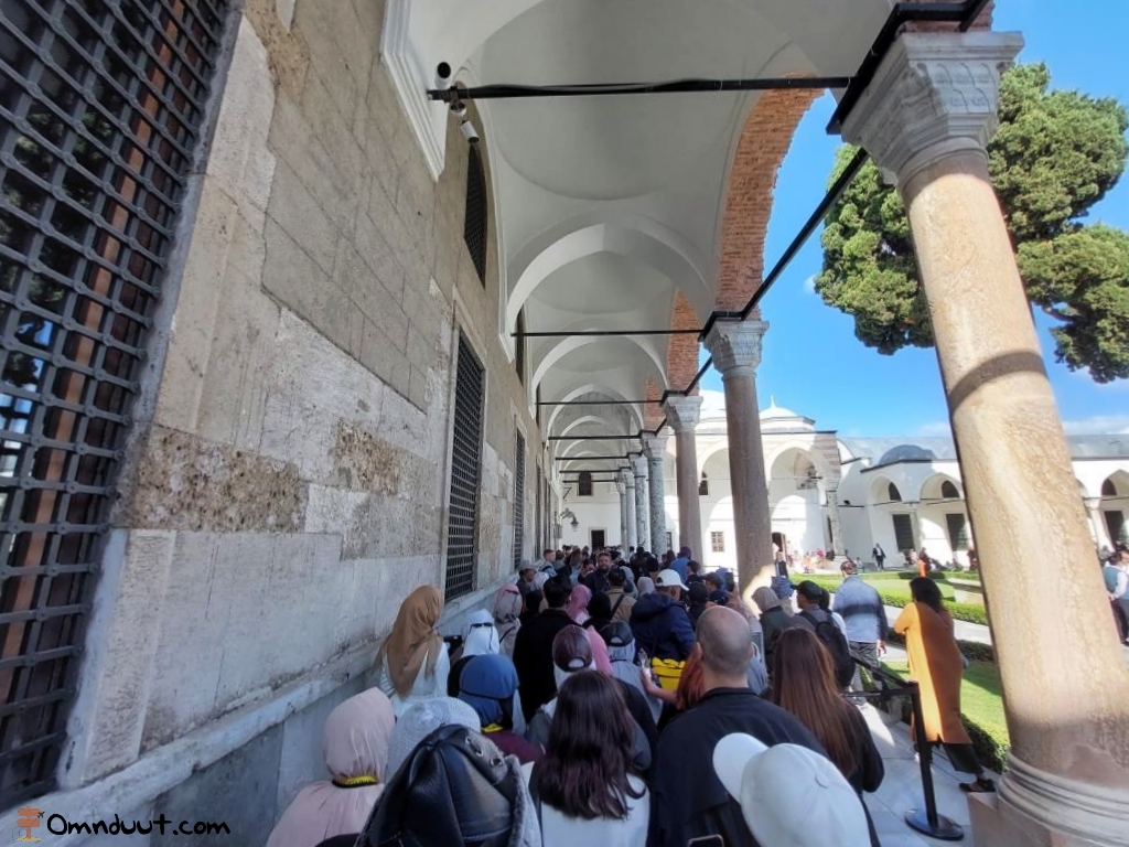 Rombongan juga gak semua paham tentang itinerary, makanya dulu di kunjungan pertama kami cuma dikasih waktu 1 jam untuk keliling istana ini. Lha ya gak cukup, udah antre 30 menitan aja orang-orang masih mengular untuk masuk ke museumnya. Alhasil, saya sebagai TL harus memaksa rombongan keluar antrean dan menuju titik temu kumpul. Gagal melihat benda peninggalan Rasulullah, hiks.