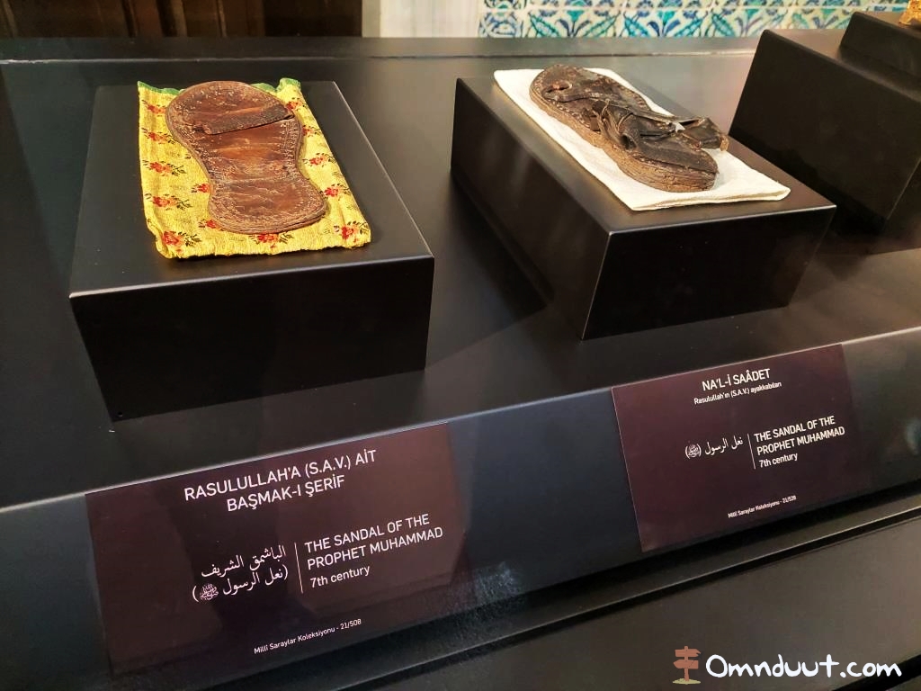 Benda-benda yang tersimpan antara lain jubah Muhammad, pedang, busur, gigi, sehelai janggut, surat yang bertanda tangan dan tentu saja bekas/cap telapak kaki.