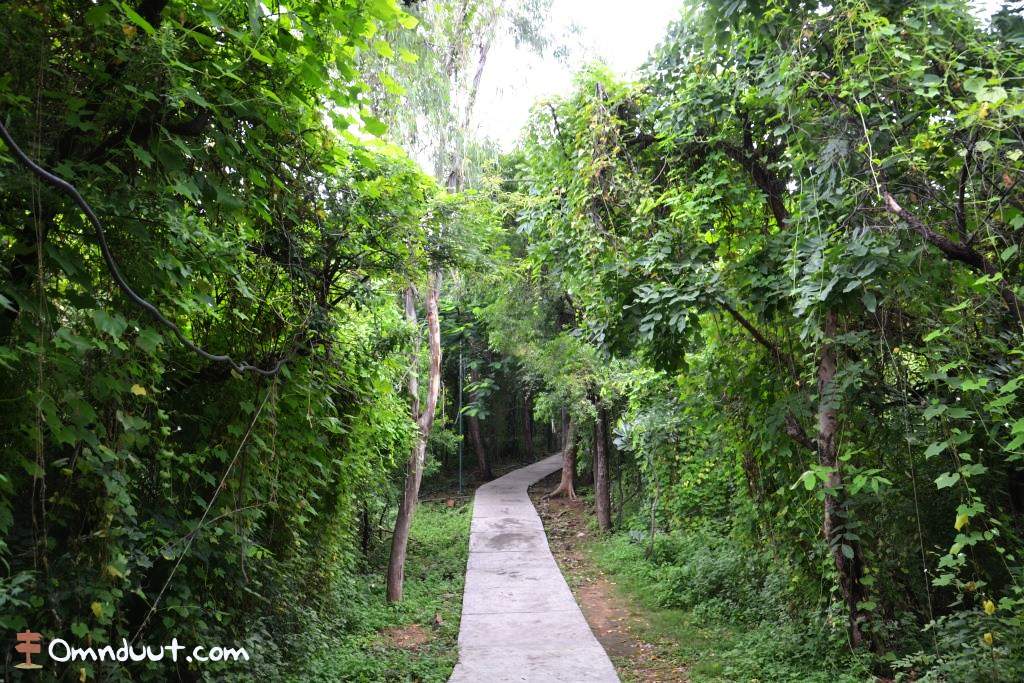 Untuk menuju si Bukit Mutiara ini, saya harus berjalan dulu lewat jalan setapak, melewati jajaran pepohonan yang rindang. Sepi banget saat itu. Saya sih bukannya takut jalan sendirian -apalah artinya menjomlo selama ini, eh haha. Tapi, saya takut bangeeet sama anjing. Maklum, sebelum ke Udaipur kan saya udah dikejar anjing saat main ke Jodhpur beberapa hari sebelumnya.