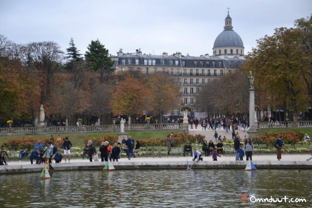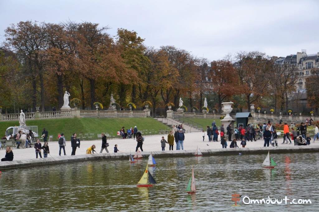 Setelah melewati kepadatan di tengah kota Paris, kami tiba di taman ini dan langsung merasakan nuanasa yang berbeda. Keriuhan di jalanan berganti dengan suara meriah anak-anak yang bermain kapal di tengah kolam yang ada tepat di depan istananya.